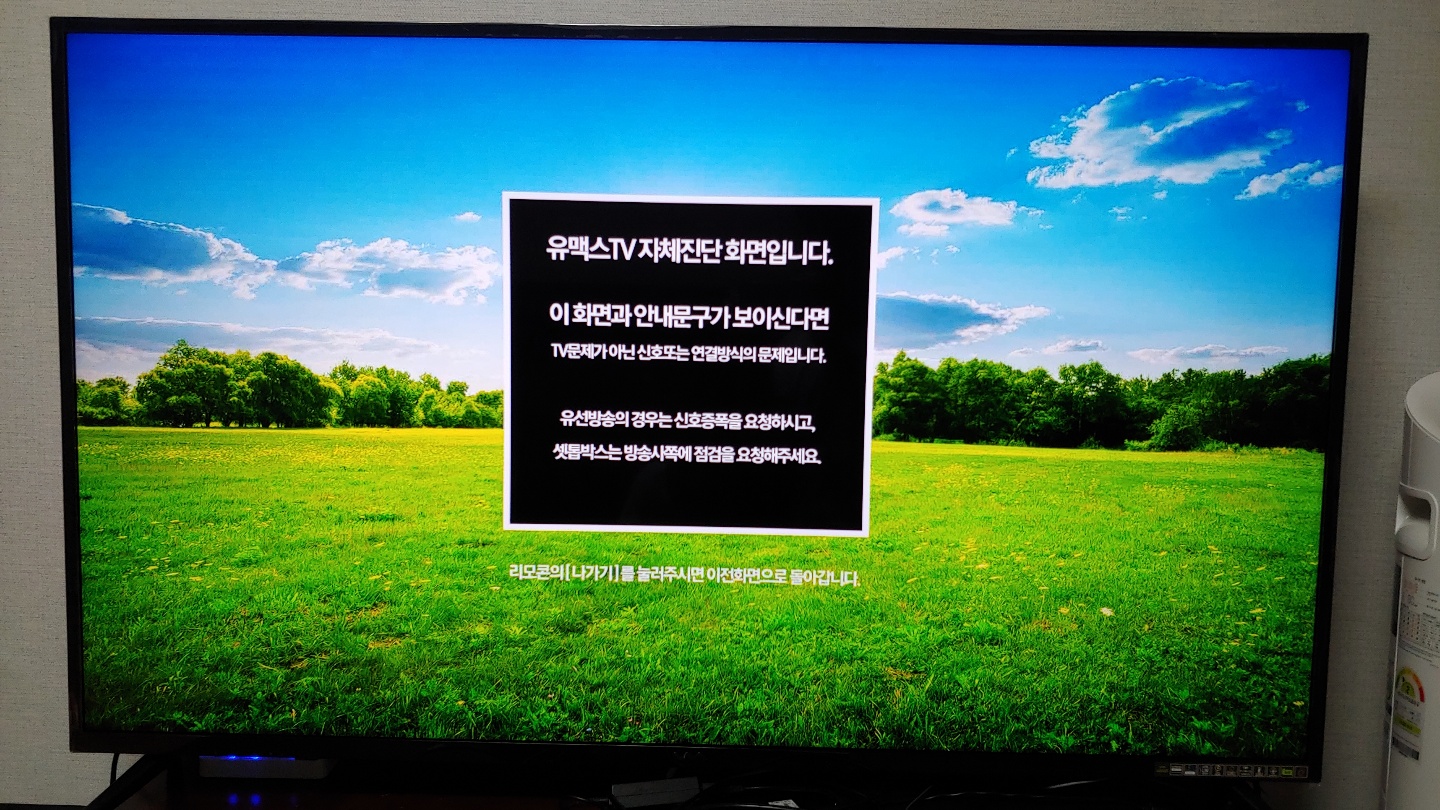 .... 와사비망고 건데, 유맥스TV 자체진단 화면이라고 뜨네요. 뭘까요? 그냥 조립한 걸까요? 유맥스 건 아니겠죠?