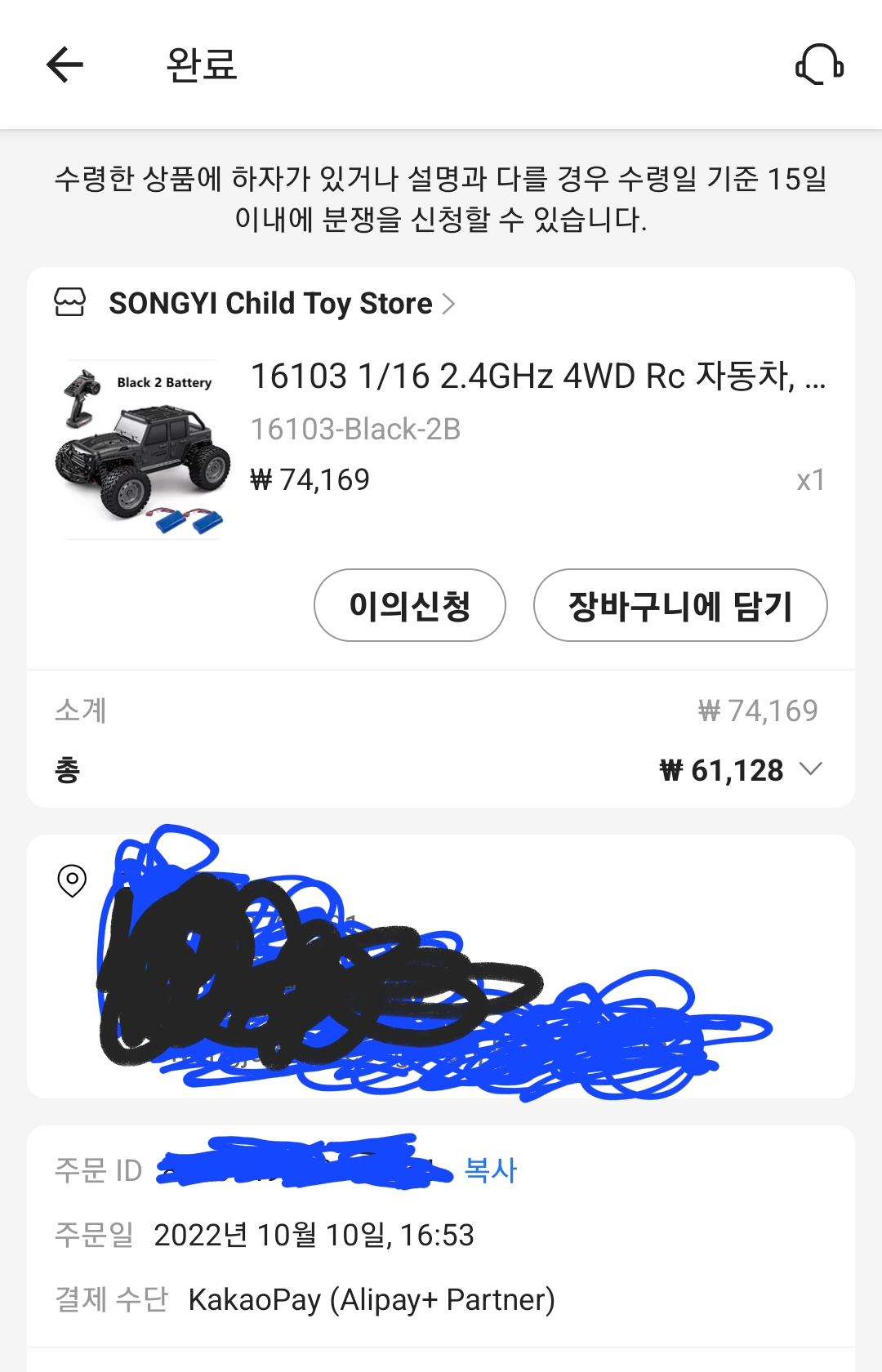 배터리 2개에 61,128원. 저렴하게 잘 산 것 같아요.