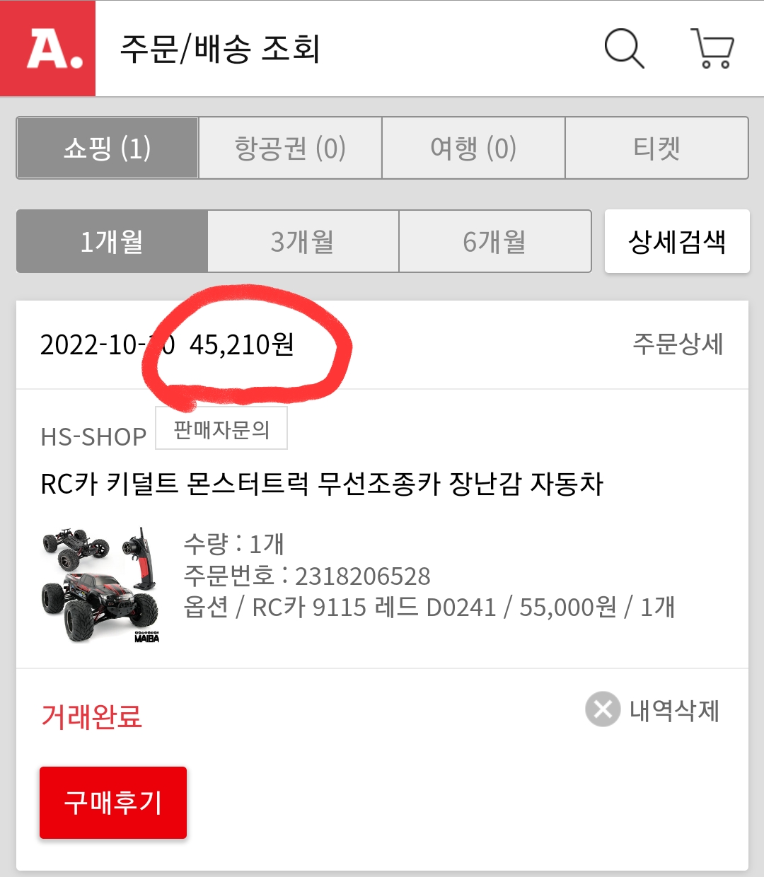 9115는 옥션에서 샀는데 45,210원이었고